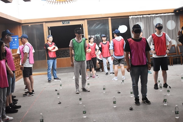 蒙眼的負責作戰,背對著負責發號施令,其余人等負責指揮,作戰的聽取司令的號令,指揮人員給司令員下達行動指令。不能胡亂干涉,又需協同合作。
