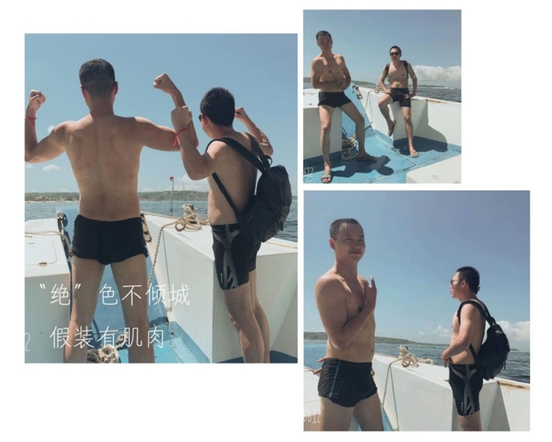 半小時后,我們首先到達了海中間由兩艘游輪搭建的漂浮“海上游玩基地”,除了“香蕉船”“甜甜圈”和“浮潛”這些項目,最有意思的是“跳海”,作為非專業隊員,大家入水姿勢各異,激起巨大的浪花。遺憾的是,“女神”曹總并沒有參與“跳海”,估計她是為大家著想,怕入水海平面升高2米,淹沒“基地”,多年以后,我還是要感謝曹總的“不淹之恩”,讓我依然可以坐在在夕陽下回憶往昔。