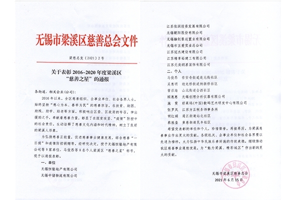 我司創想儀器榮獲2016-2020年度梁溪區“慈善之星”的稱號,下面小編為大家具體介紹一下。